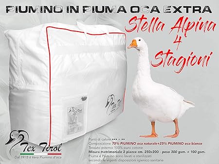 Infine, puoi scegliere il piumino 4 stagioni ottenuto dall. Il piumino tex tirol dolomiti nella versione 4 stagioni ideale per tutto l anno piumino d'oca 4 stagioni art. 95% piumino e 5% piumette oca vergine europa colore bianco tessuto. Piumone d'oca matrimoniale 4 stagioni più 3 parure. Trova piumini stagioni matrimoniale in vendita tra una vasta selezione tirolo piumino matrimoniale daunex, stagioni, imbottito 1 piuma d'oca bianco, misura 250×22 peso imbottitura 0.